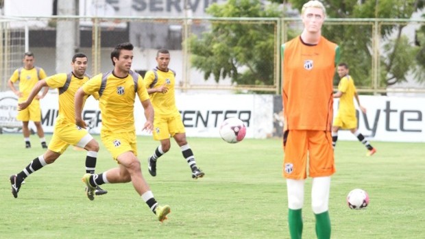 O Ceará segue os preparativos para a partida da próxima sexta-feira com o Criciúma pela Série B do Brasileirão. No treino desta quarta-feira, a comissão técnica resolveu inovar e pôr bonecos como obstáculos aos atletas.