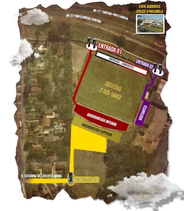 O estádio, com a instalação de arquibancadas tubulares, tem capacidade para 10.000 pessoas, mas, por segurança, ela foi reduzida para 8.600. O sócio que ainda não habilitou o smart tem duas opções. Uma é a arquibancada inferior, com entrada pela BR-277. Outra é a arquibancada superior, com acesso pela Rua Catarina Luvizoto Gorda. Por segurança, o torcedor não pode passar de um setor para outro.